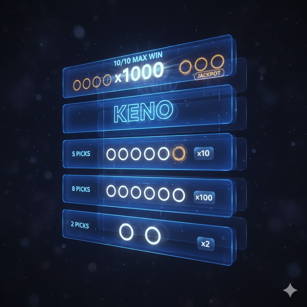 Varianssi tarkoittaa sitä, kuinka paljon tulokset heilahtelevat odotusarvosta. Korkean varianssin tasoilla (Keno 10/11) voit kokea satoja peräkkäisiä tappioita ennen yhtä suurta voittoa. Matala varianssi (Keno 2/3) pitää pelitilin saldon tasaisempana, mutta suuria rikastumisia ei tapahdu.